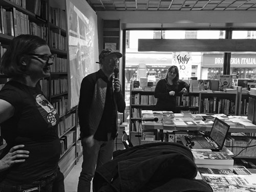 Doing a short Q&A about urban exploration during Timothy Hannem new book signing at La Friche book store in Paris.